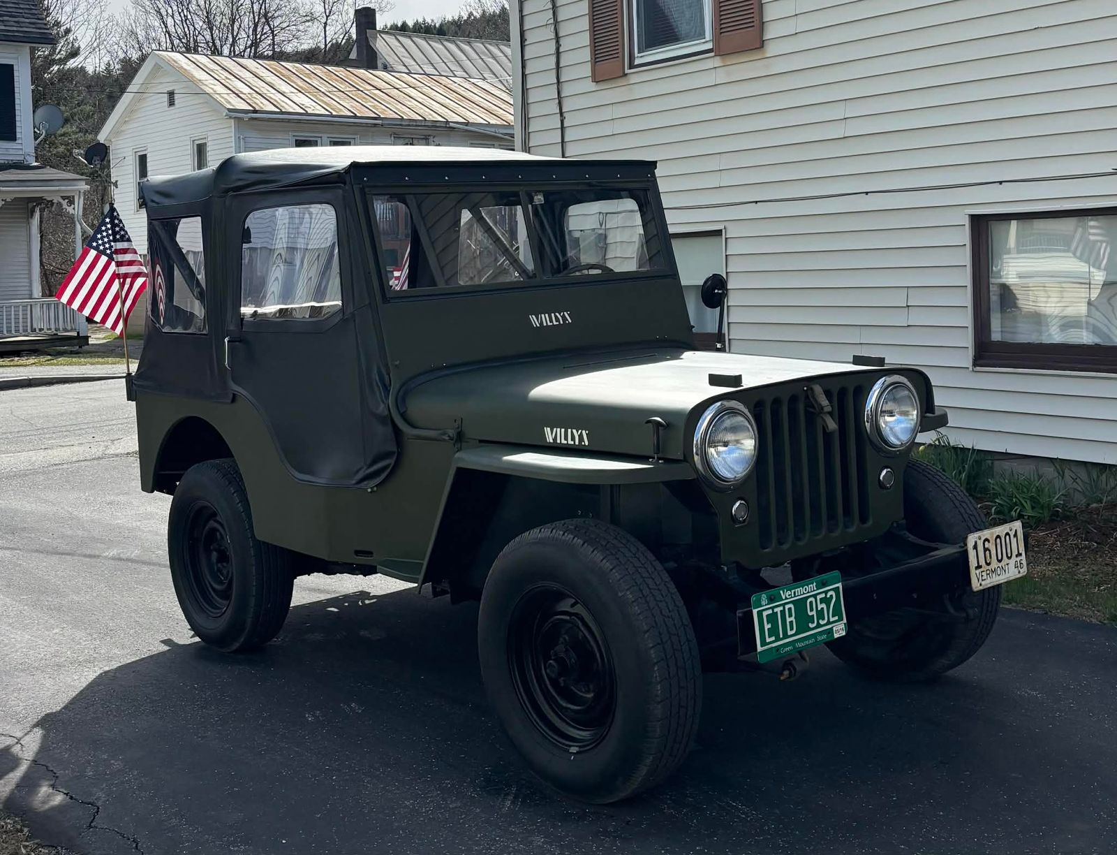 1946 WILLYS CJ2A WITH PTO UNIT FOR SALE. Starts excellent. Runs well. Registered antique with clean title in hand. Includes "best top" in excellent condition. New seat covers, floor mats; everything kept as original as possible. Stripped down to full solid frame, and replaced from dashboard back with new steel tub. Working PTO unit attached. Paint is drabb green and have lots of literature to go with it. Radio Cordovan tires on it in great shape. Seat belts installed for front and rear. Registered, and previously held VT state inspection. Includes (4) chrome rims. CASH ONLY. NO TRADES. SERIOUS BUYERS ONLY. $15,000.