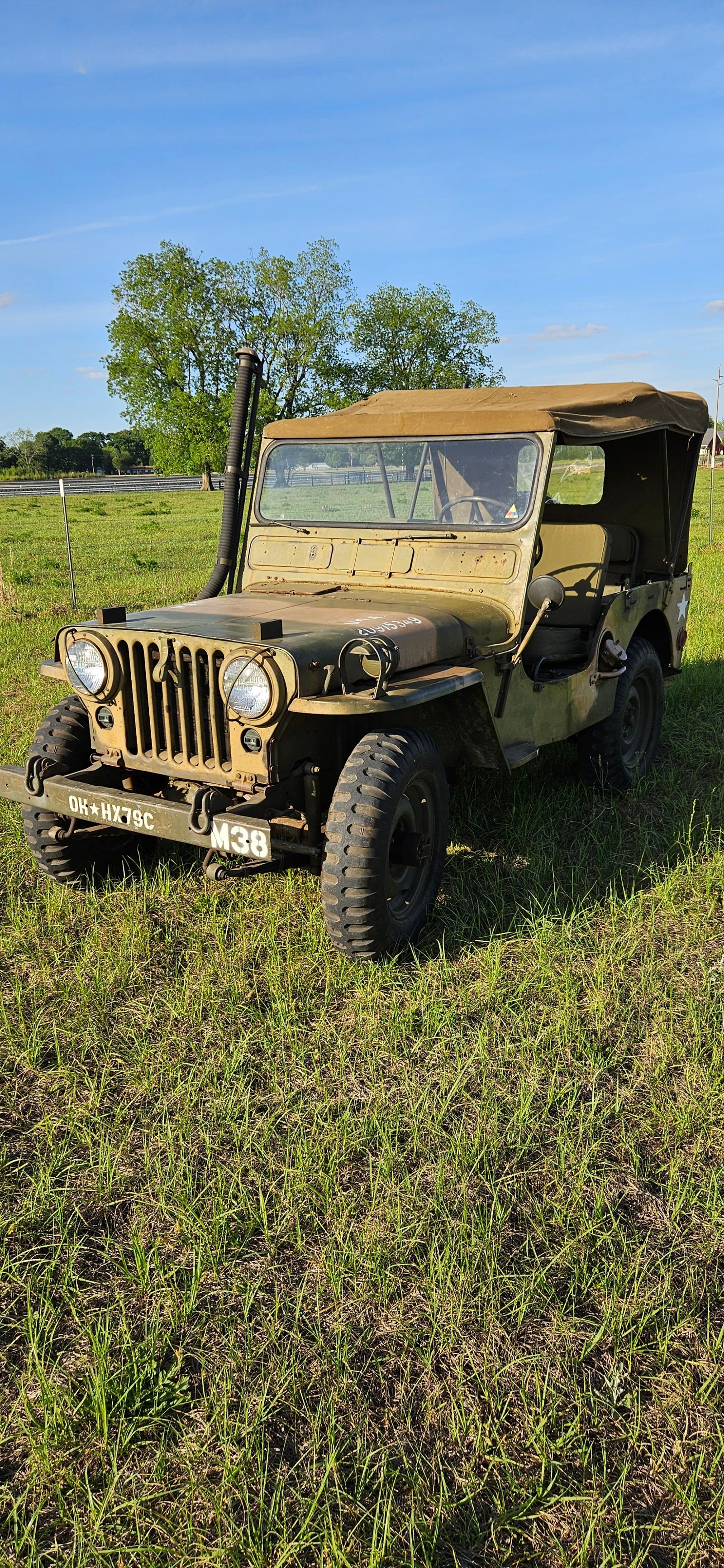 1952 M38 Willys Overland. Solid Jeep. Smooth running L-134 Go-Devil, T90 3 speed shifts smoothly, Spicer 18 transfer case shifts in and out with ease. Has a forwarding kit installed. Comes with a full tool kit, shovel, axe, Supply Manual ORD 9 SNL G-740, Technical Manual 9-8012, Supply Catalog, top side panels and doors. Asking $12,500