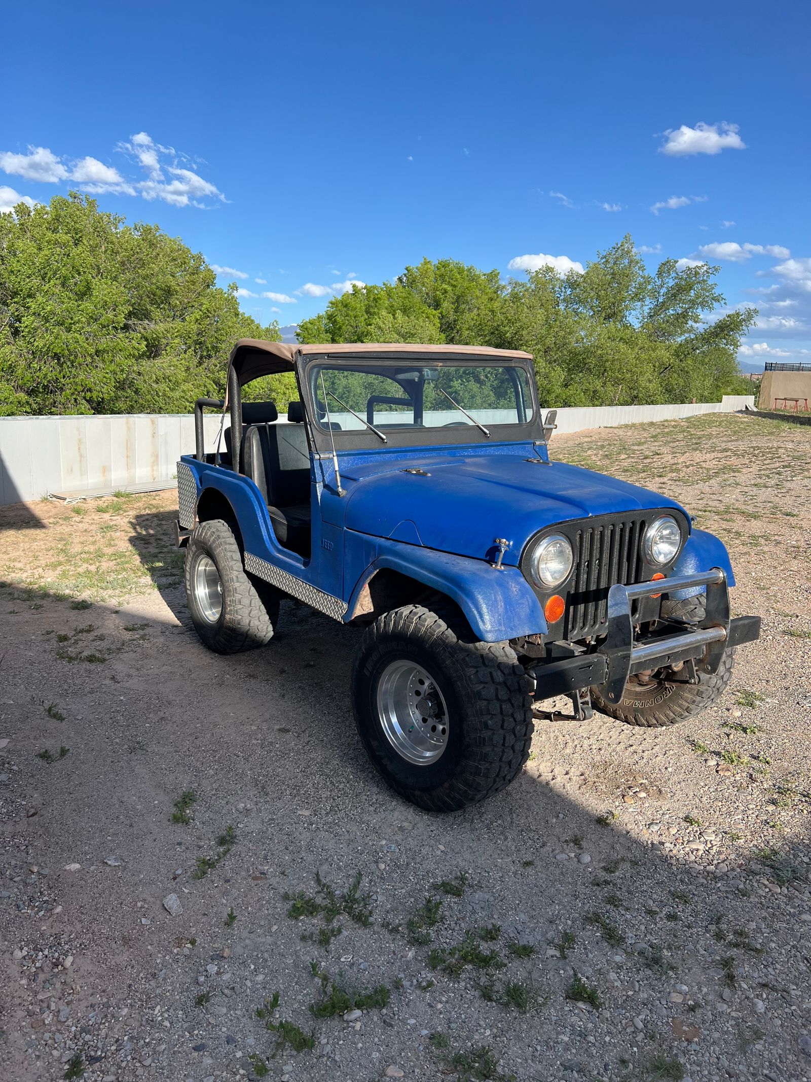Chevy 350 v8, automatic turbo 350 transmission, headers and dual exhaust, rhino lined in/out, 33” tires, power steering, power brakes, relocated gas tank.